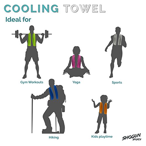MULTIPURPOSE: The Shogun Sports Cooling Towel is perfect for hot flashes, outdoor activities, hiking, GYM workouts, Yoga, Pilates, fever or headache therapy, heatstroke prevention, sunscreen protection, cooling while absorbing. Use it as bandana, head cover, or neck wrap.