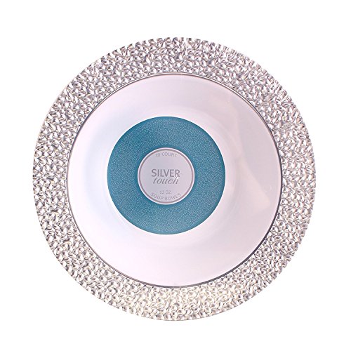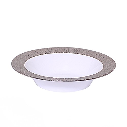 - Package Includes: 40 - 12 oz Upscale Silver Touch Collection Hammered Border White Plastic Bowls.