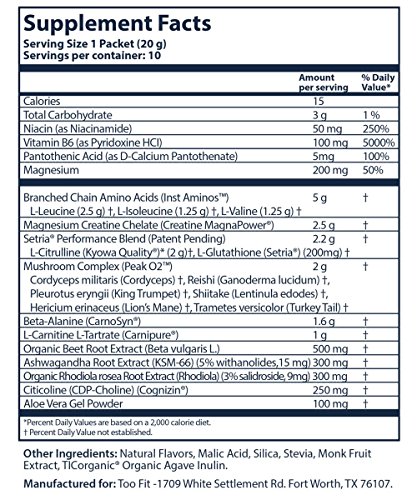 -. Title : Too Fit ® PRE | All Natural Stimulant Free Pre Workout Supplement Drink Powder | Organic Adaptogens, BCAA’s, Creatine Magnapower, Cognizin, Carnosyn, | Blackberry Lemonade, 10 Single Servings