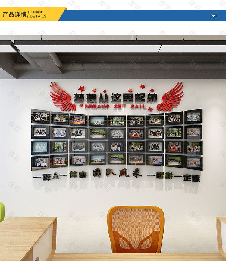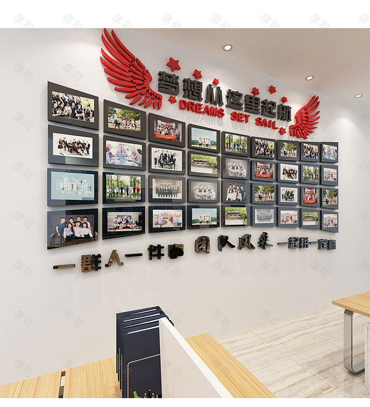 相框墙公司文化墙亚克力立体墙贴画团队励志墙贴办公室装饰照片墙