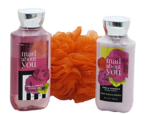 -. Feature : 3 piece Mad About You bundle includes 10 ounce Shower Gel, 8 ounce Body Lotion, and Shower Sponge / Fragrance is a love-struck pairing of soft peonies & black currant kissed with creamy vanilla musk / Body lotion with shea butter and moisture complex with Vitamins E and B5 for soft, smooth skin / Shower Gel with aloe vera,Vitamin E, and shea butter for a rich, bubbly lather & softer, cleaner skin / This passionate scent in a luxurious lathering shower gel and moisturizing body lotion can't miss!