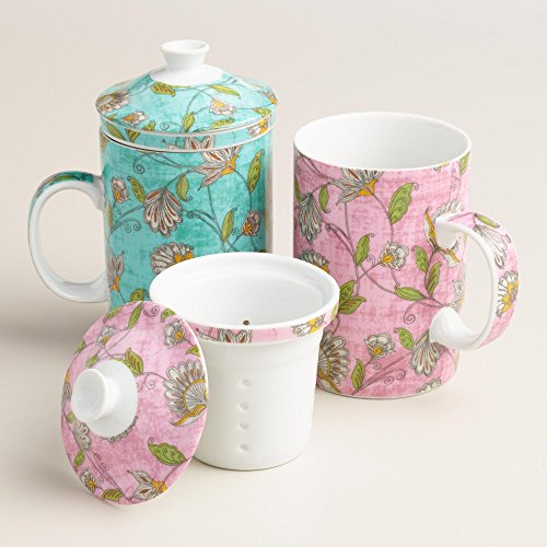 -. Brand : World Market -. Color : Pink -. Feature : Brew a hot cup of tea in this porcelain infuser mug featuring a Scottish thistle-inspired design / This beautiful teacup is crafted of porcelain on a textured watercolor background / Choose from either Pink or Blueish Green / 12 Ounce Tea Cup - Includes filter and lid / Dishwasher safe, 3.55" in Diameter x 4.33" Height -. Label : World Market -. Manufacturer : World Market -. PackageQuantity : 1 -. ProductGroup : Kitchen -. ProductTypeName : KITCHEN -. Publisher : World Market -. Size : 12 Ounces -. Studio : World Market -. Title : Scottish Thistle Pip Floral Ceramic Infuser Tea Cup Mug with Filter and Lid - 12 Oz