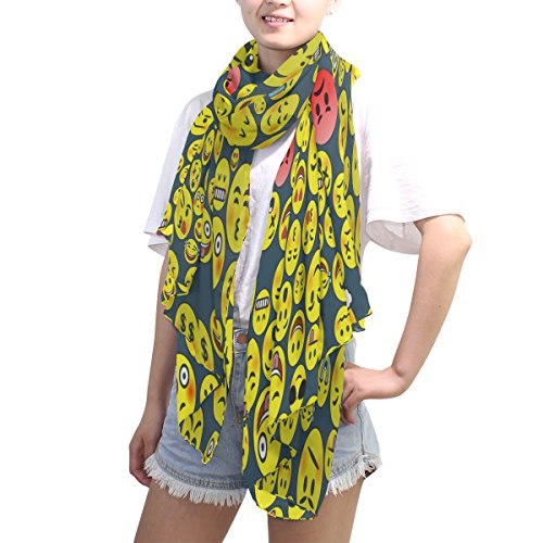 (ALAZA)/Accessories/Cold Weather Accessories/DIRECT FROM USA/ALAZA Hipster Emoticon Emoji Chiffon Silk Long Scarf Shawl Wrap