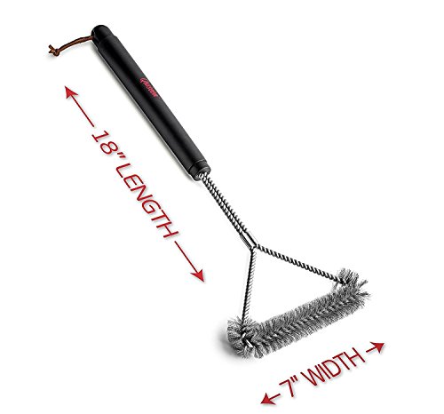 Quiseen Stainless Steel Heavy Duty BBQ Grill Brush Long Safe Handle, 18" L