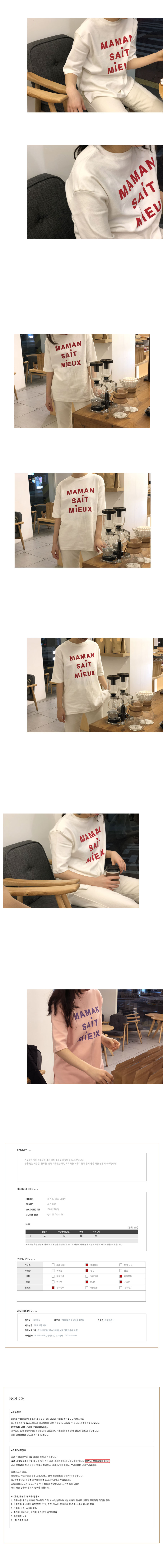 Free(단면): 가슴둘레 53cm, 어깨 48cm, 소매 26cm, 총장 68cm