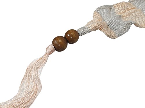 Studio : Private Label Publisher : Private Label Binding : Apparel Product Description This fashionable knit scarf adds a subtle sparkle to your wardrobe. It is 94% rayon, 6% nylon and measures 1 1/2 inches wide, 68 inches long and the ends feature round wooden beads with tassels. Wear it as a headband, scarf, sash, belt or any creative way you choose. 0