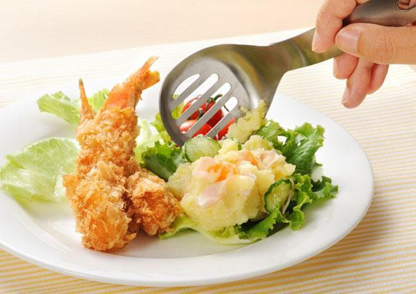 ![]() すくいやすいスプーン形状。 ![]() ![]() ![]() つぶす、混ぜる、盛り付けるが一本でできます。