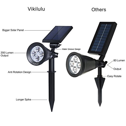 Warm Tips: Please confirm the switch is under "on" status so that the light could be charged normally and auto lights on at night. If the ground is too hard, do not twist or hammer it with force. Try to soften the ground with water and then insert into the ground.Description: The latest technology for beautiful, high-tech landscaping would be these In-ground Lights. During the daytime, they are retracted, and absorbing solar energy. At dusk, they literally pop up and light up, giving you lights along a pathway, driveway, deck or dock that aren't in your way during the day.Includes installation hardware, completely wireless. Powered by a lithium ion rechargeable battery that's solar powered - each light illuminates via 4 LEDs. Completely weather resistant. Each light works independently. Specifications: Waterproof level: IP65 Charging time:6-8 hours Working time: about 9-10 hours Battery: 18650 lithium battery 3.7V 2200mAh Solar panel: 5V / 1.5w Dimensions:29*9.5*34 cm Main Material:ABS Power Source: Solar-Powered Package includes: 2 * Solar In-ground Light 4 * Spike 4 * Screws 2 * ManualFeature