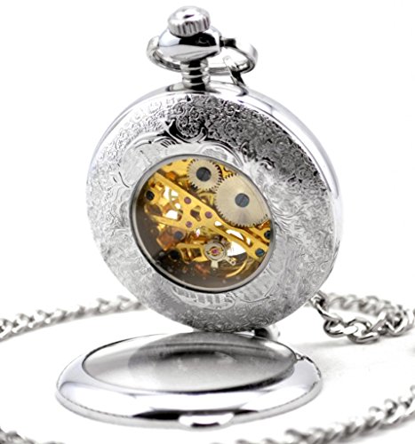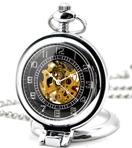 -. Feature : Right Angle Magnifier Mechanical Movement Pocket Watch / 1*Long Chain: 80cm, 1*Cow Boy Chain: 37.5cm, Pandent Diameter: 4.7cm / High-end Skeleton Arabic Numerals Big Pendant / Material: Brass Plated Stainless Steel / Gift Bag with Brand Name "Infinite U Jewellery"