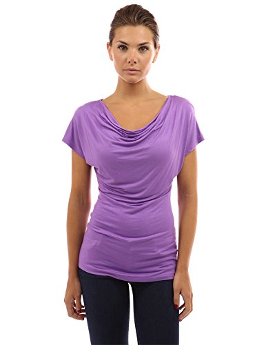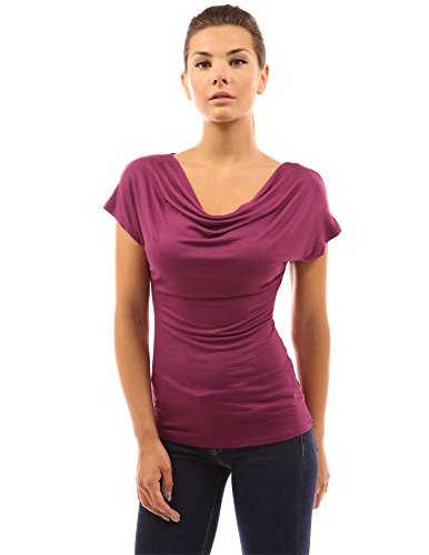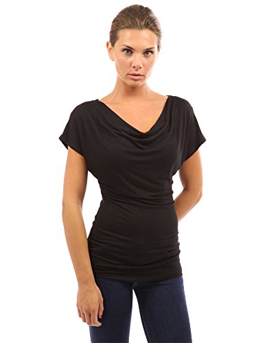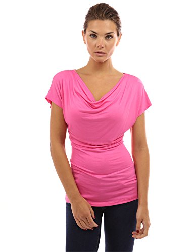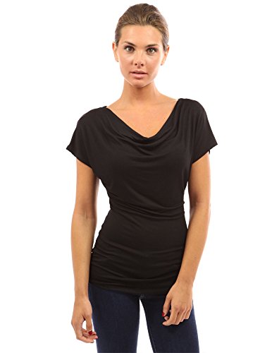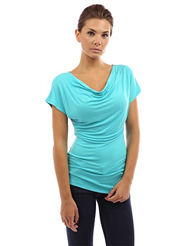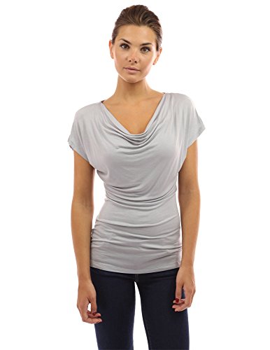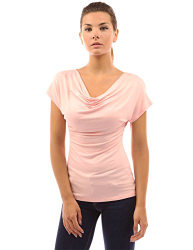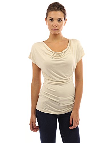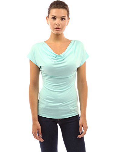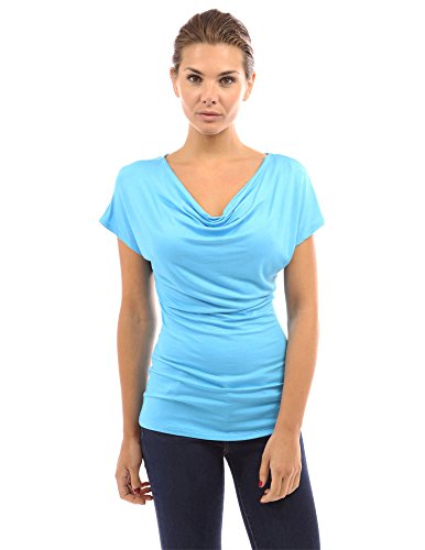 Simple Cowl Neck Short Sleeve Casual Blouse Top.