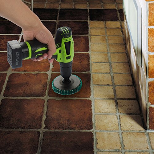 Kichwit 4 Inch Ultra Stiff Drill Powered Scrub Brush, Heavy Duty Scrubbing Pad Drill Attachment with Quarter Inch Shaft