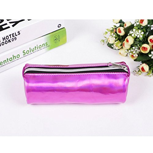 Naovio Holographic Pen Bag Cosmetic Bag Makeup Bag Pencil Case Stationery Pouch Bag with Zipper,Rose red
