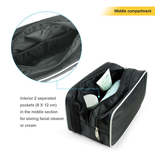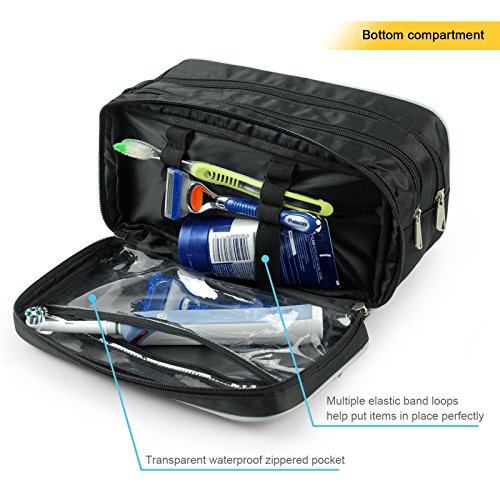 -. Feature : HIGH QUALITY OXFORD CLOTH - Becko's toiletry bag with huge capacity is made of superior oxford cloth, making the bag durable for a long time use. Simple but classic, ideal for men or women when go for a trip. Best gift for him / her in Valentine's day, Birthday, ceremony or other festivals. / DUAL-ACCESS ZIPPER COMPARTMENT FOR STORAGE - Main compartment is designed with transparent zipped pocket for your shaving kits or grooming items. Visable and waterproof pocket. With elastic bandings, can hold grooming tools or toothbrushes in place perfectly. / TWO ZIPPED COMPARTMENTS WITH MULTI-POCKETS - Interior 5 pockets of the two main compartments help store facial cleansers, cream, or sunscreen. Roomy enough to keep towels, toothpaste, shaving cream, after shaving or other necessory toiletries. / CARRY HANDLE & STYLISH GRAY PIPING DESIGN - With carry handle, it is convenient to hang the bag over towel horse, rack or doorknob. Gray piping design adds a fashionable appeal to the bag. Soft and lightweight to store in backpack or suitcase. / PERFECT COMPANION FOR VARIOUS OCCASSIONS - Measurements - L*W*H (10.827 x 6.299 x 1.969 inches).Whether you go for a gym, weekend getways, business trips or personal vacations, Becko's toiletry bag is an ideal companion for your holiday vacations.
