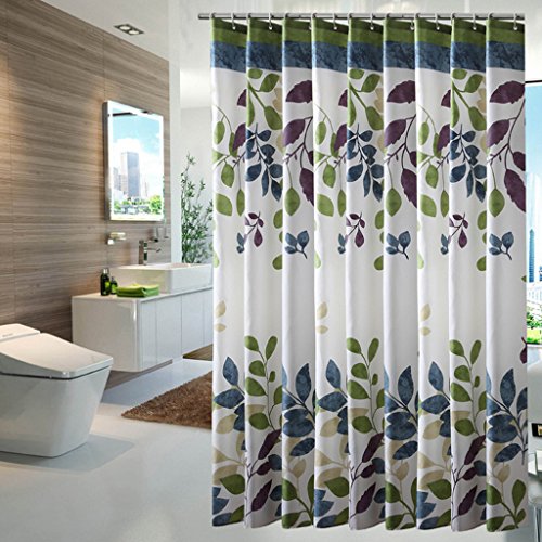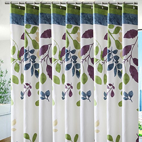 JES&MEDIS Shower Curtains Green Leaves Printed Waterproof Hooks Bathroom Curtains,72-Inch by 72-Inch