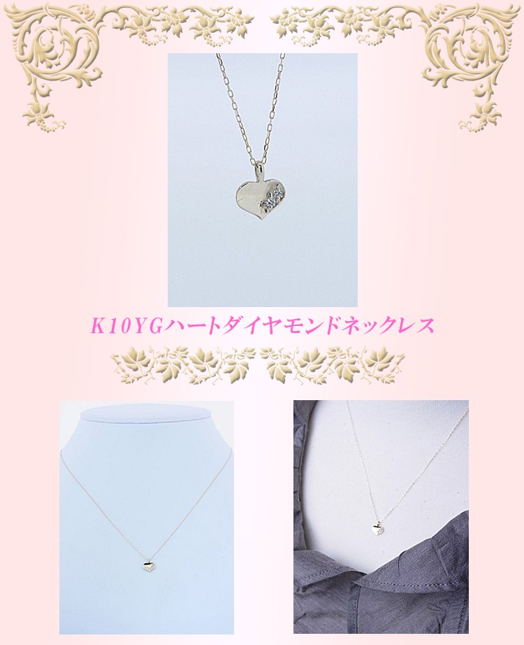 商品説明 ハートのサイドで天然ダイヤモンドが輝くイエローゴールドネックレスです。デイリー使いにお勧めです。