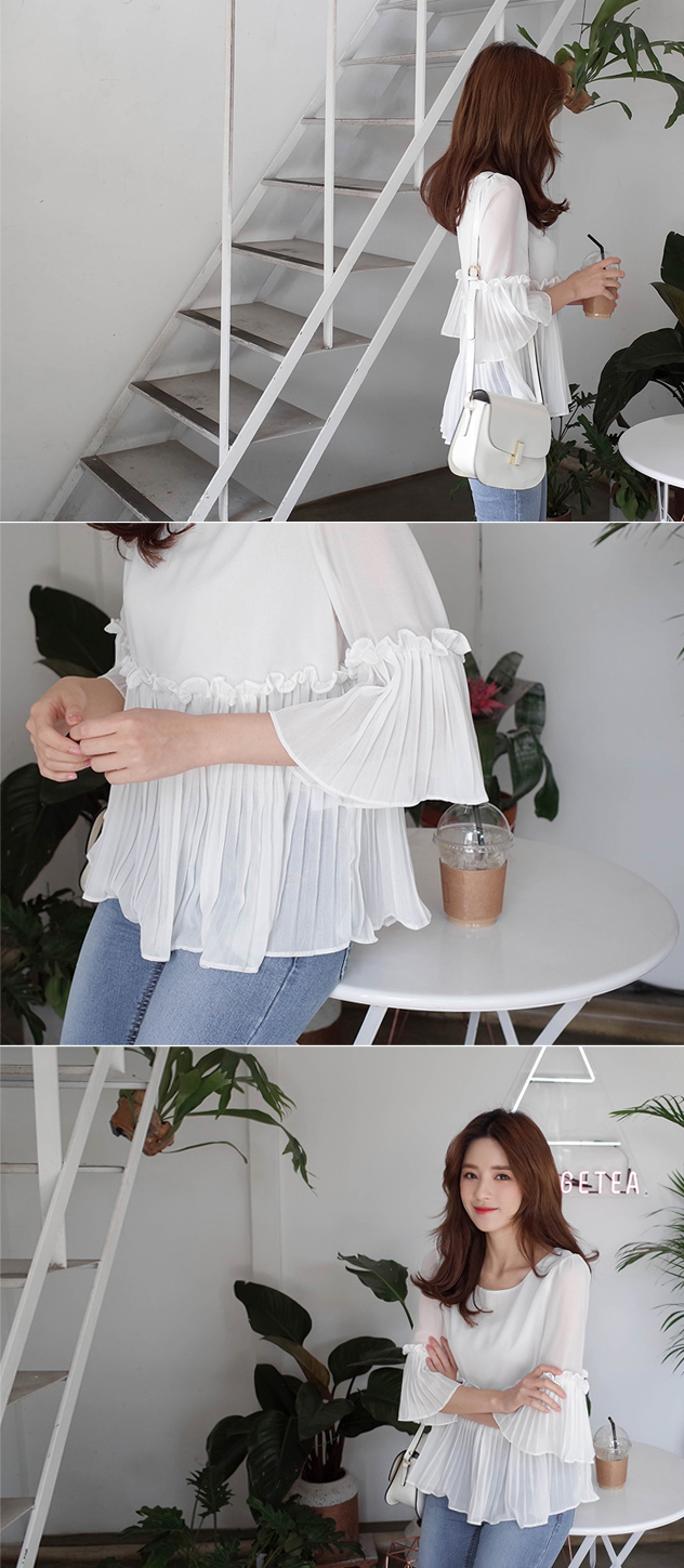 플리츠의 연결부분에는 프릴처럼 사랑스런