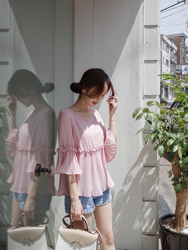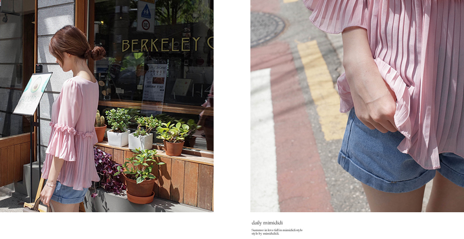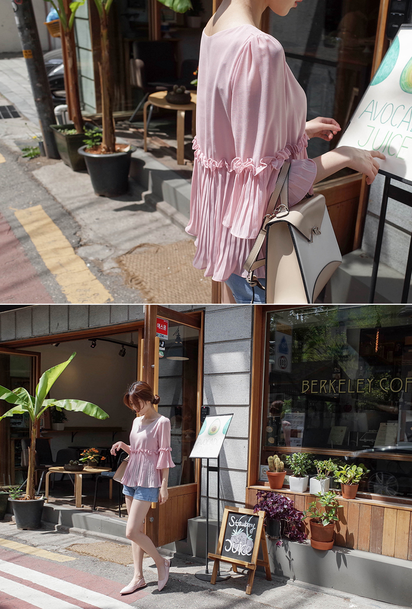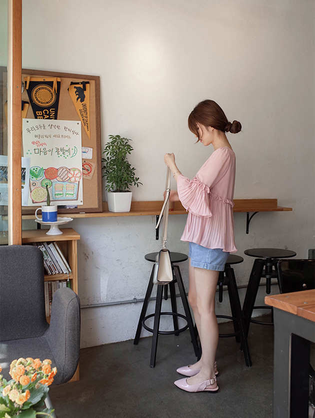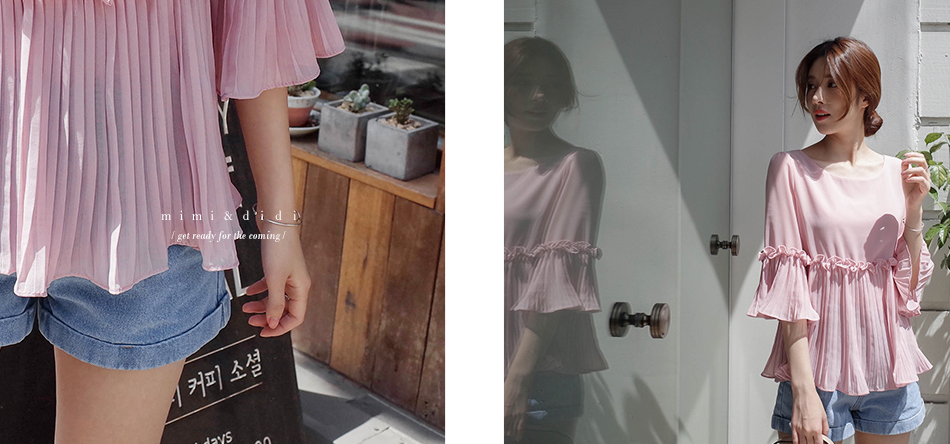 소매와 밑단의 플리츠 디테일로 트렌디함을