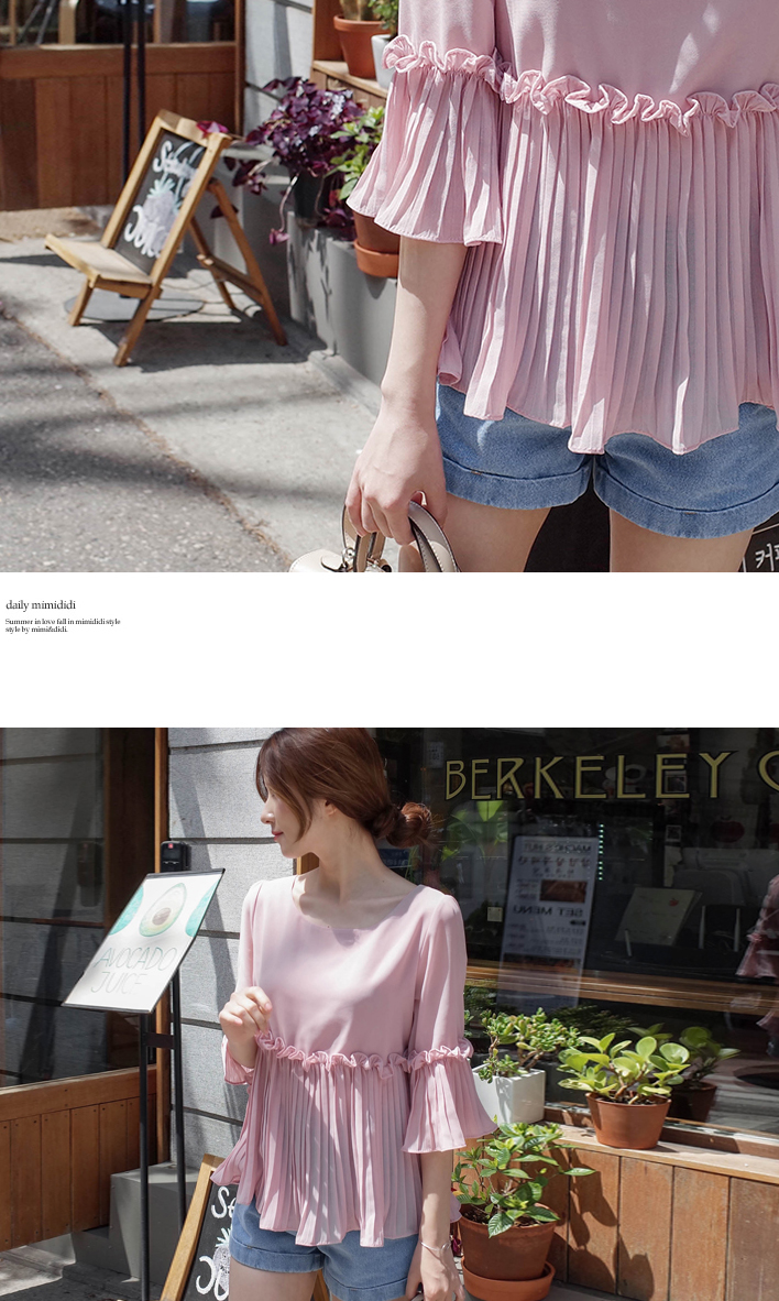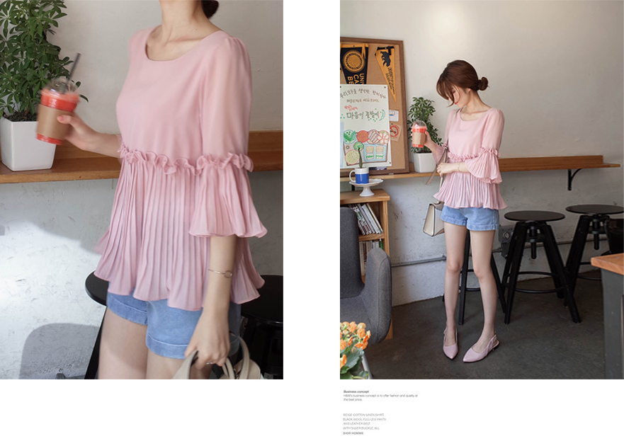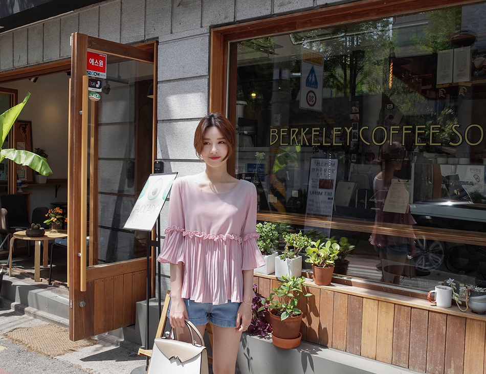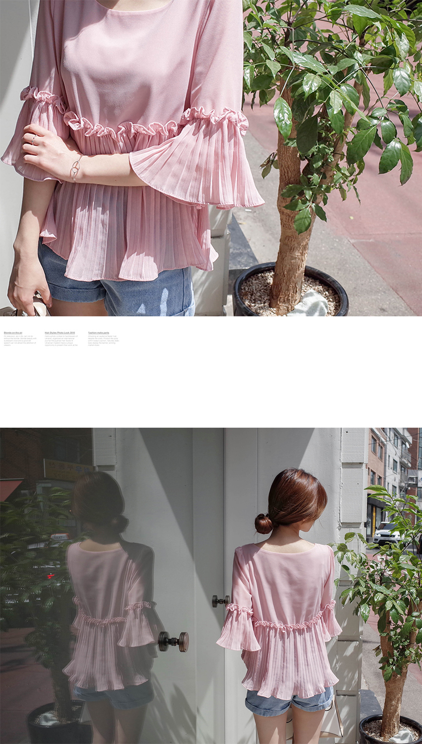 소매와 밑단의 플리츠 디테일로 트렌디함을