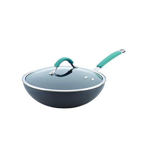 -. Title : Rachael Ray Cucina Hard Anodized Nonstick 11-Inch Covered Stir Fry, Gray with Agave Blue Handle