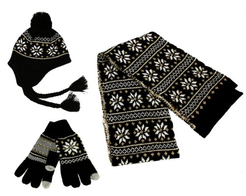 Look great and feel warm in our jacquard soft knit winter scarf Design is on one side only Designed to coordinate with our jacquard hats and gloves, which may be purchased separately Care instructions: hand wash cold Color: black Dimensions: 60"L x 8"W Material(s): acrylic 0