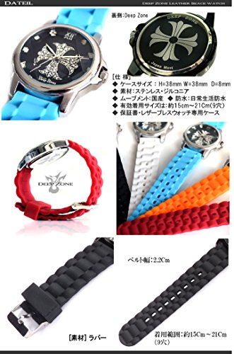 -. Feature : 個性的なジルコニアクロスフェイスの文字盤。 / 心地よい肌触り、快適なフィット感のラバーベルト。5カラー / ◆ ケースサイズ : H=38mm W=38mm D=8mm ◆ 素材:ステンレス / ◆ ムーブメント:国産 ◆ 防水:日常生活防水 ◆ 保証書付 / ◆ 有効着用サイズは:約15cm~21cm(9穴) ◆ Deep Zone ブレスウォッチ専用ケース