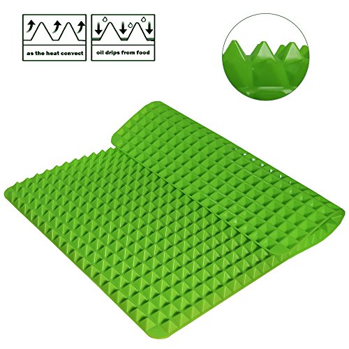 - PERFECT FOR HEALTHY COOKING: Baking mat with special design allowing air to circulate and heat to distribute evenly from top to bottom, no more turning and flipping, and allowing oil, grease and fat to drip away. Making delicious and healthy meal much more easy.