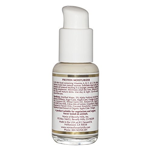 -. Binding : Health and Beauty -. Brand : Nonie Of Beverly Hills -. EAN : 0650776200045 -. Feature : World's most powerful facial anti aging protein product. We guarantee you'll notice a much more youthful and radiant glow! / Contains Vitamins A, B, C & E and 5% Alpha Hydroxy Acids naturally forming from fruits. Ideal for dry or mature skin. / A cruelty free product suitable for use by Vegetarians & Vegans. Does not contain: Additives, fragrances, animal products / Exfoliates and increases cell renewal. Deep pore cleaning. Read more in our Product Description below! / MADE IN THE USA in a state of the art facility - Nonie Of Beverly Hills formulates the most effective anti aging products on the market - Nonie Of Beverly Hills products work & they work extremely well - We guarantee you'll get results! -. Label : Nonie Of Beverly Hills -. Manufacturer : Nonie Of Beverly Hills -. Model : Nonie of Beverly Hills -. MPN : 3-5003-0 -. PackageQuantity : 200 -. PartNumber : 3-5003-0 -. ProductGroup : Beauty -. ProductTypeName : HEALTH_PERSONAL_CARE -. Publisher : Nonie Of Beverly Hills -. Size : 50 ml / 1.75 oz. -. Studio : Nonie Of Beverly Hills -. Title : Nonie of Beverly Hills AHA! Protein Moisturizer All Natural. 1.75oz -. UPC : 650776200045