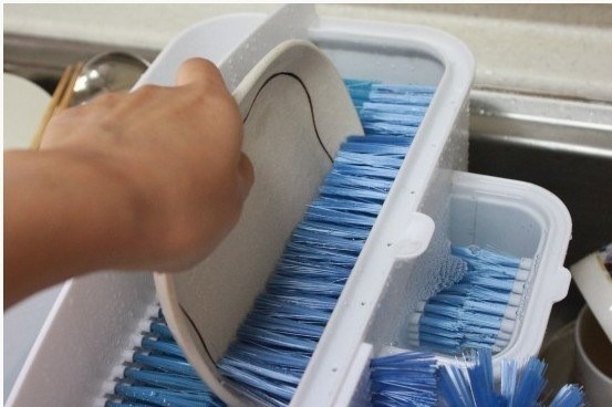 - Fine bristles thoroughly clean dishes