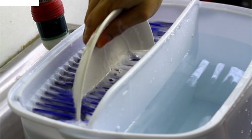 Fine bristles thoroughly clean dishes