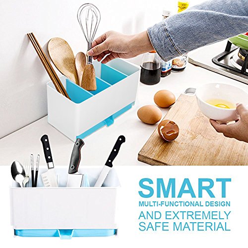 SMARTEST MULTI-FUNCTION – Eco Draining Organizer (TM) is a drainer organizer with adjustable trays. It can hold spoons, knives, forks, and other kitchen utensils for storage or draining.