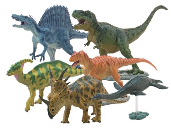 | ダイナソーソフトモデル「ティラノサウルス、羽毛ティラノサウルス、トリケラトプス、ブラキオサウルス、ステゴサウルス、アロサウルス、スティラコサウルス、スピノサウルス、パラサウロロフス、ヴェロキラプトル、アンキロサウルス、プテラノドン、プレシオサウルス」の13体セットです。専用BOX入りでギフトにぴったりです。 |