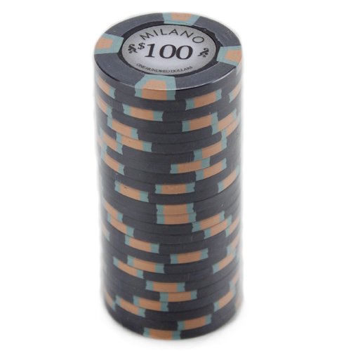 Claysmith Gaming $100 Clay Composite 10 Gram Milano Poker Chips - Sleeve of 25