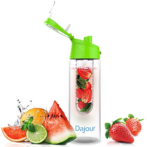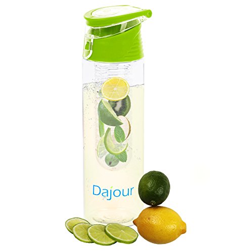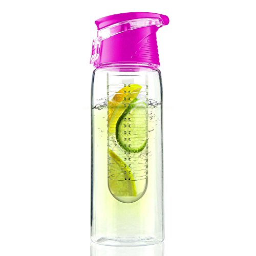 Studio : Ultimate Kitchen Publisher : Ultimate Kitchen Product Description Enjoy the taste and health benefits of naturally flavored water with this stylish and light weight water bottle from Ultimate Kitchen. One of our best sellers! Drinking water is healthy for you, but most of us do not drink enough of it. Why? The taste! We'd rather have juices and sugary soft drinks. Try giving your water a splash of flavor instead! The Flavor Infuser Water Bottle features an easy to use infuser for enjoying any combination of flavors for your water. Ideal for enjoying flavored water at the school, pool, gym, office, while traveling or any locations where glass bottles may not be permitted. Made with high impact and durable Tritan, this bottle is designed for enjoying naturally flavored water on the go and is a reusable, healthy and economical alternative to bottled water and soft drinks. What else do we love about this bottle? Easy to use, simply place fruit in the infuser and fill the bottle with fresh water. Holds a generous 27 fluid ounces. 100% BPA free, impact-resistant Triton. No gaskets to remove or replace. Super easy to clean! TIP: Lid opens all the way, don't be afraid to break it. Water bottle can be used with infuser. But for best results, infuse water overnight and remove infuser before using. 0