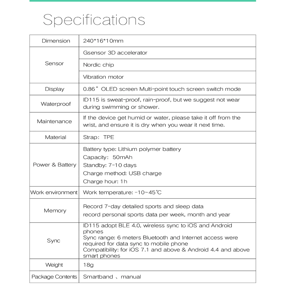 Function:Alarm Clock,Countdown,Passometer,Message Reminder,Sleep Tracker,Activity Tracker,Call Reminder,Fitness Tracker