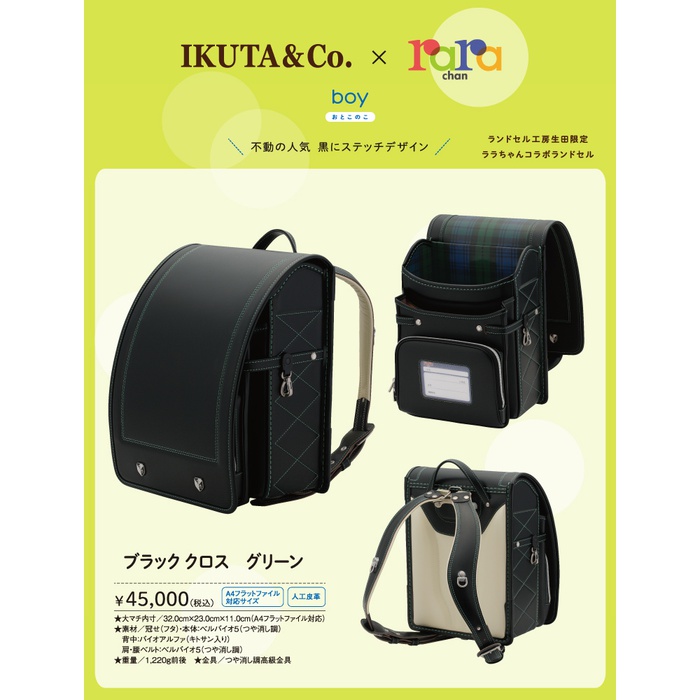 【2017년도 란도셀】블랙 크로스×그린【IKUTA×RARA코라보(콜라보레이션) 모델】