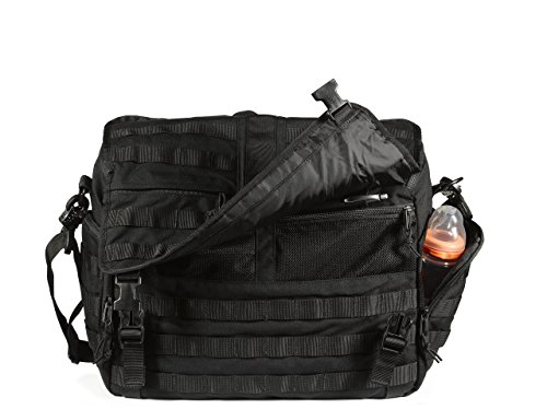 The Mission Critical Messenger Diaper Bag for dads is the perfect item for stylish dads who are seeking a versatile bag that can easily transition from work to dad duties. Our Messenger Diaper Bag features a unique reverse opening top for easy access while wearing. The changing pad sleeve doubles as a laptop holder and is accessible through a side zipper or the main compartment. Side pockets are perfect for bottles or snacks. Under the front flap are two zippered pockets for pacifiers and other accessories. All the basics of a great bag are included; a pen slot, business card holder and key lanyard. Our masculine Messenger Diaper Bag has a sleek design incorporating military grade construction that allows for ultimate versatility. This item makes for a great gift for new dads. Please note, does not include changing pad.Feature