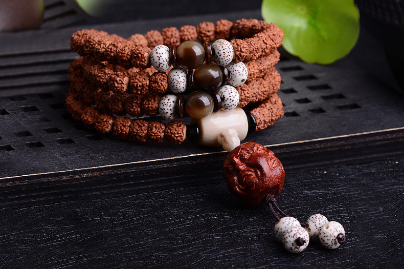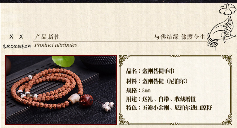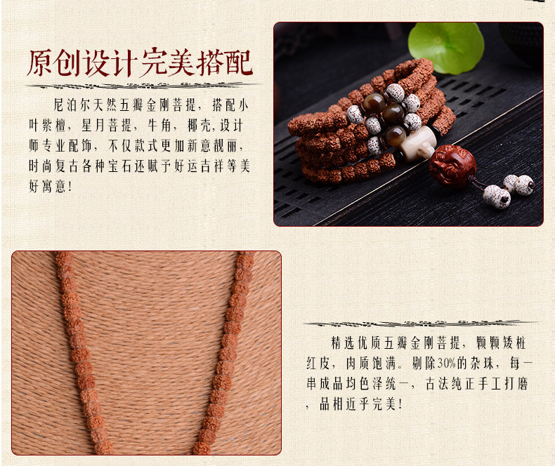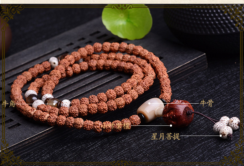 开光尼泊尔藏式红皮小金刚菩提108颗佛珠男女小叶紫檀手串