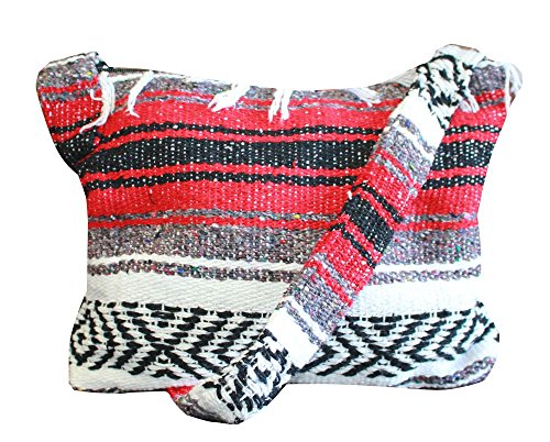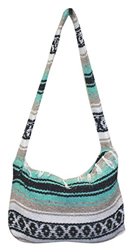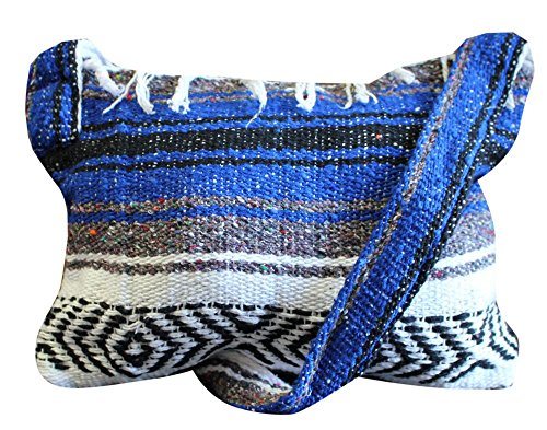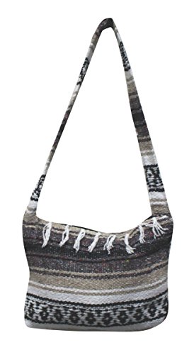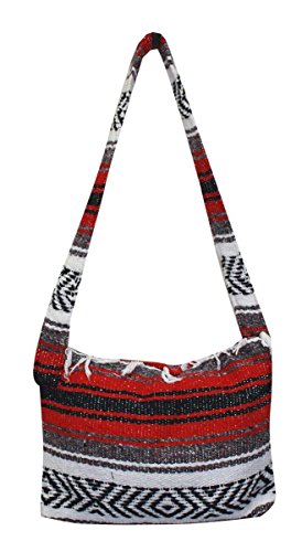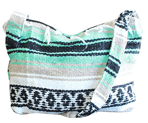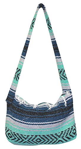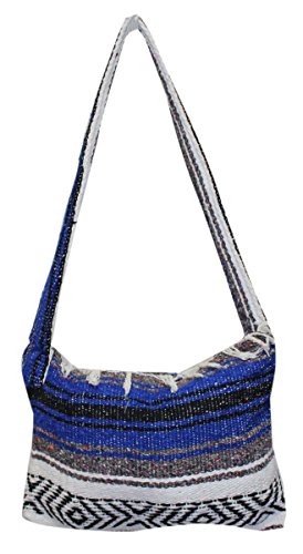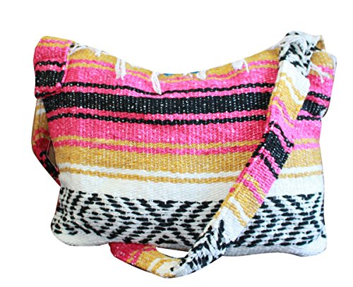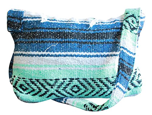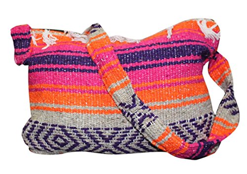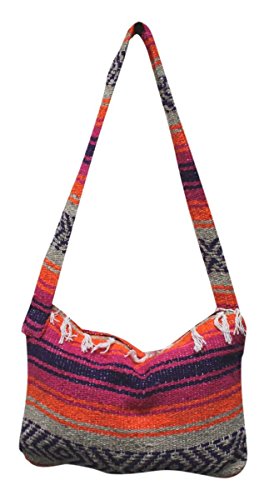 Product Description This hand made Mexican blanket style bag is great for school, beach use or everyday use as a purse or tote. Each purse is hand made of woven acrylic Mexican blankets with a fringe along the top for a sturdy and durable construction. Measures 14" wide by 10" tall with a 20" strap drop. Please allow for slight color variations as each is hand made. 0