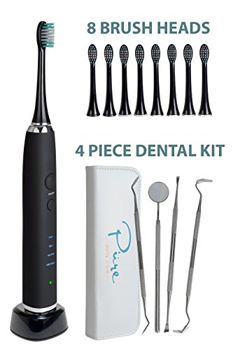 Studio : Pure Daily Care Publisher : Pure Daily Care Binding : Health and Beauty Product Description Ultra Sonic Whitening Toothbrush with industry leading ultra powerful 40,000 VPN Motor to whiten and polish teeth while providing a deep clean - 4 Distinct Cleaning Modes including "Clean" for standard brushing, "Soft" for sensitive teeth, "Whiten" which uses the full 40,000 VPM to dissolve surface stains and whiten teeth over time, while "Massage" uses pulsating vibrations to boost blood circulation around teeth and gums to improve complete oral health profile. A total of 8 Premium quality DuPont Engineered brush heads are included. Also included is a professional stainless steel dental kit to be used bi monthly to remove more stubborn stains and avoid expensive trips to the dentist. 0