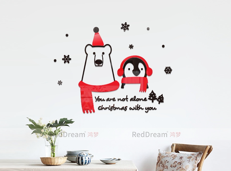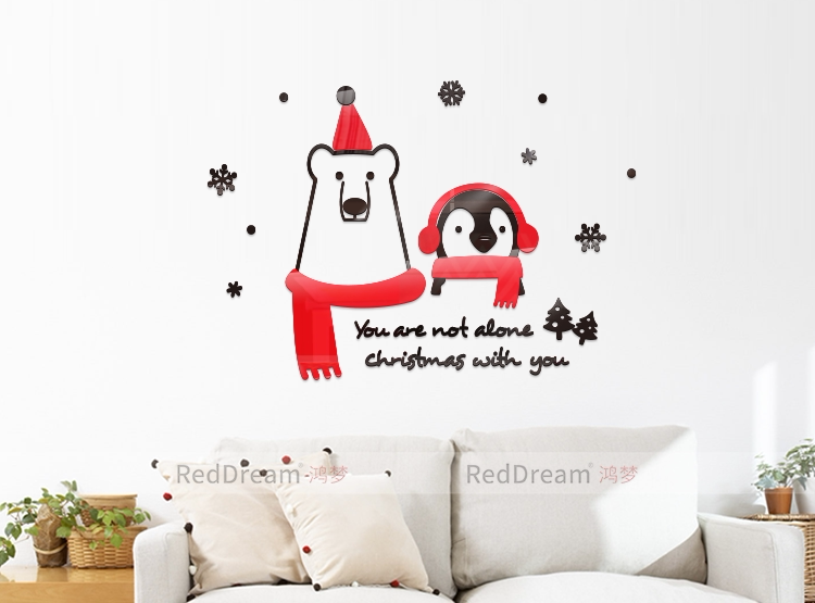 你并不孤单圣诞可爱小熊企鹅3D立体亚克力节日装饰创意背景墙贴画
