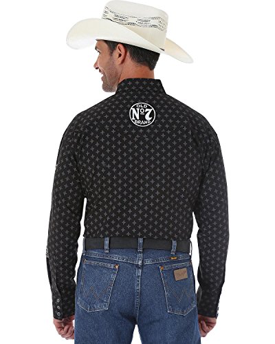 Studio : Wrangler Publisher : Wrangler Product Description Dress up cowboy, and show your love of the Old No. 7 This button down shirt features a black print design throughout, while a white Jack Daniel's logo is embroidered at the back yoke, sleeve, and left chest. Material is made of 100% cotton, and has buttons at the front placket, chest pockets, and cuffs. 0