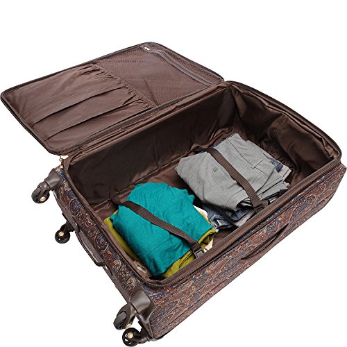 -. Binding : Apparel -. Brand : London Fog -. Department : unisex-adult -. Feature : High density dobby polyester and lightweight paisley polyester material / Low profile 360 degree multi-directional wheels mounted to grid base for stability / Convenient top, side and bottom carry handles / Interior has integrated shoe pockets and a zippered mesh pocket on lid / 29x12x19 -. Label : Leisure Merchandising -. Manufacturer : Leisure Merchandising -. Model : 7387 -. PackageQuantity : 1 -. ProductGroup : Apparel -. ProductTypeName : LAGE -. Publisher : Leisure Merchandising -. Size : One Size -. Studio : Leisure Merchandising -. Title : London Fog Soho 29 Inch Expandable Spinner