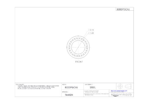 Timken 13836 Tapered Roller Bearing, Single Cup, Standard Tolerance, Straight Outside Diameter, Steel, Inch, 2.5625" Outside Diameter, 0.3750" Width