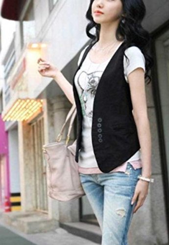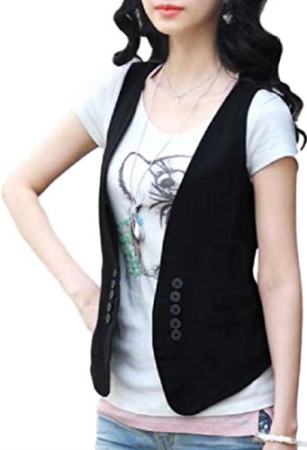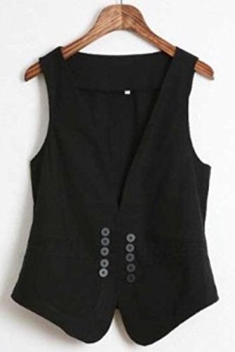 -. Feature : 普段のTシャツがワンランク上になる、綿素材のジレです。とてもシンプルで無地のブラック(黒)は、着る服を選ばず、オールシーズン春夏秋冬ご活用できます。ゆったりスカートやラフなブラウス、シックなコーデにも合います。いつもの服装が綺麗な、ちょっとお出かけ着に、お洒落に変身します。 / 素材は、綿で通気性や、保温性もある着心地の良い素材です。薄すぎないのでしっかり感がでて、着るだけでおしゃれ感がでます。無地なので柄のお洋服やワンピース、プリントTシャツ、フラワー柄(花柄)などにも合います。形は小さなたくさんのボタンがお腹まわりの前についていて、この小さなボタンのアクセントがウエスト周りなどすっきり見える効果&かわいさアップです。ウエストが引き締まって見えるのは前だけでなく、後ろ姿も綺麗です。背中部分は絞れるバックルが、リボンのように見え、バックスタイルがスリムに見えかわいさと、美シルエットを兼ね備えているデザインです。バックスタイルもシェイプアップにしてくれます。 / コーディネートでは、ワンピースや、ロングワンピース、マキシワンピにもアクセントとして素敵です。ノースリに近いフレンチスリーブブラウスや、シャツにも相性がいいです。デニムや、スリム、スキニーとも相性がいいですし、それに合わせるチュニックにもとても合います。カプリ、サブリナパンツなどパンツ類以外にも、スカートにも相性がとてもいいですよ。靴もビーサン(ビーチサンダル)、スリッポン、ぺったんこから、パンプス、ヒール、ローファー、などなどなんでも合います。結婚式や二次会、パーティーのセットアップでブラウスやシャツの上に着たりすることもできます。また、レジャーなどちょっとした羽織りがほしいときカーデのかわりにもなります。プリントや、ロゴTシャツ一枚で子供っぽくなるファッションをこの一枚で少しドレッシーにワンランク上のオシャレなコーディネートができます。ストローハット(麦わら帽子)や、かごバッグ(籐バッグ)などとの相性も良いです。 / 小さいサイズから大きいサイズまで取り揃えております。 サイズ:◯M : 前着丈52.0 cm、後着丈45.0cm、胸囲 82.0cm ◯L : 前着丈53.0 cm、後着丈46.0cm、胸囲86.0cm ◯XL : 前着丈54.0 cm、後着丈47.0cm、胸囲 90.0cm ◯XXL : 前着丈55.0 cm、後着丈48.0cm、胸囲94.0cm ※寸法は平置きにて計測。多少の誤差がある場合がございます。ご了承ください。□カラー:ブラック(黒) □素材:綿 ●安心安全のAmazonプライム(P.R.Ime)FBA倉庫発送ですので24時間対応で即日発送 ・通常便は送料無料です。