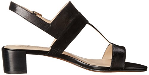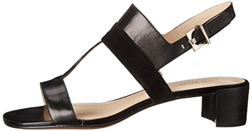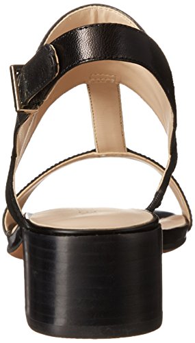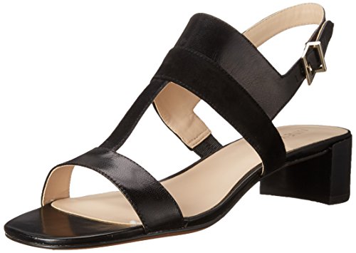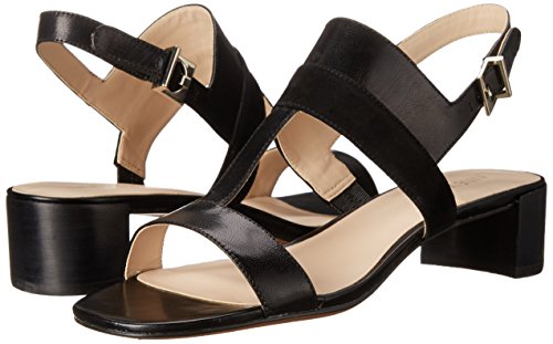 Open-toe sandal in leather and suede featuring T-strap and backstrap with buckle closure