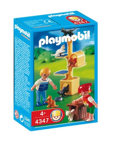 -. Feature : Ages 4+ / Set includes cat tree with 2 hide-away compartments and 3 scratch pads, 6 kitties, feeding dish, basket, and 2 animal enthusiasts