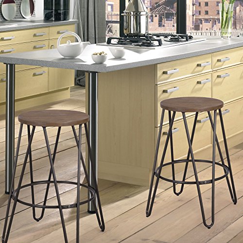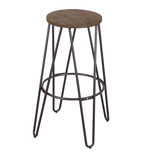 -. Brand : DecentHome -. Feature : Wood and metal bar stool Wood Seat Top / The chairs' legs and frames are made from solid metal -. Label : DecentHome -. Manufacturer : DecentHome -. PackageQuantity : 1 -. ProductGroup : Furniture -. ProductTypeName : HOME_FURNITURE_AND_DECOR -. Publisher : DecentHome -. Studio : DecentHome -. Title : DecentHome Metal Round Top Wood Seat Stackable Counter Bar Stool Chair