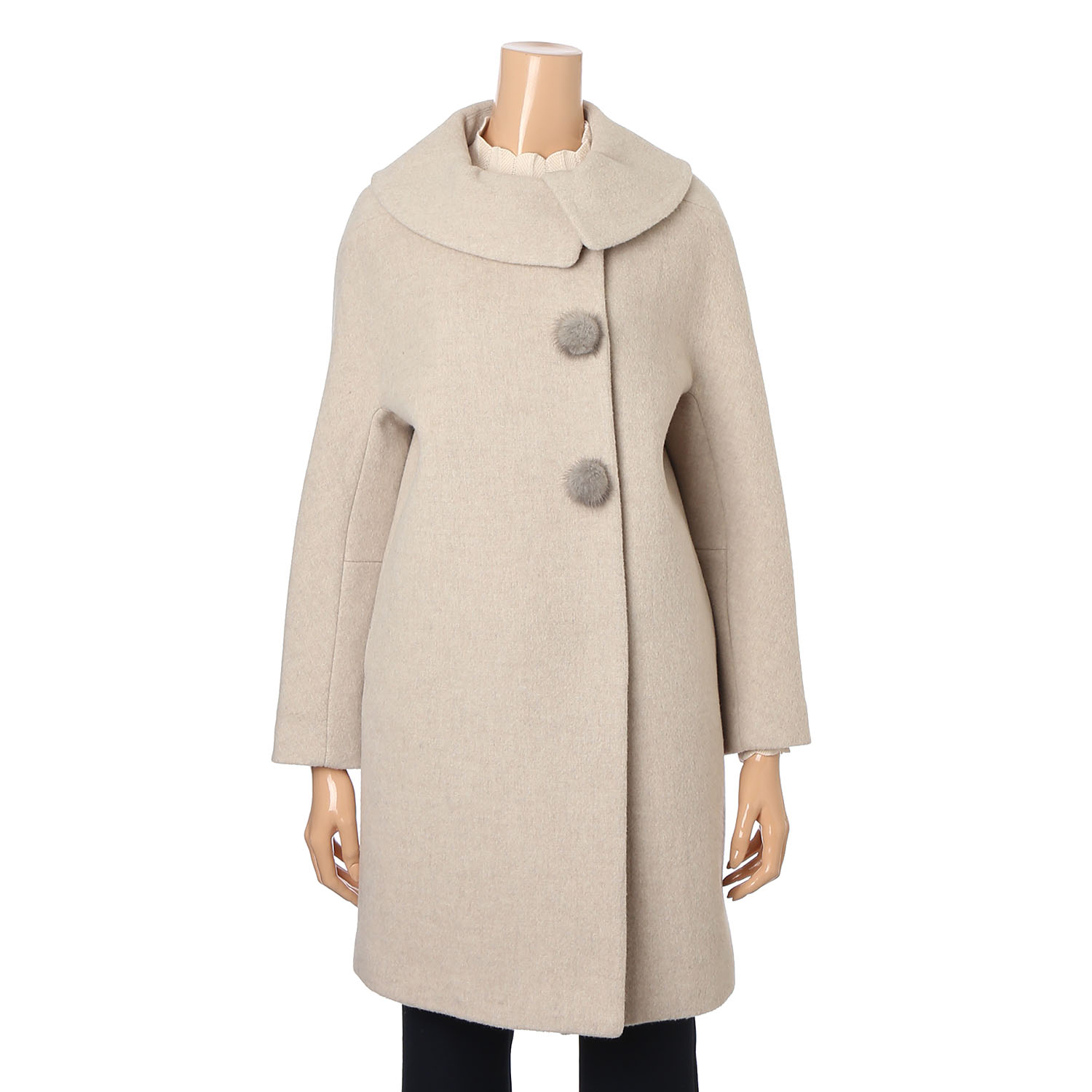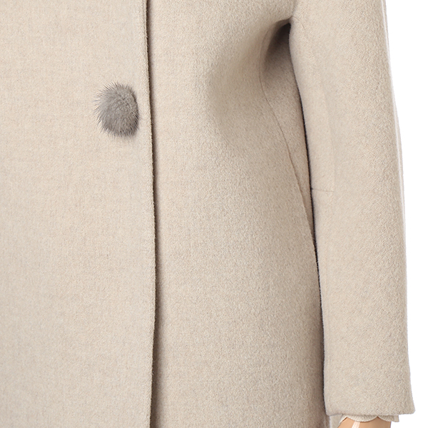 라운드 실루엣의 카라 디자인이 더욱 귀여운 무드를 연출하는 코트입니다. 폼폼 장식으로 계절감을 한층 더하며 스냅 버튼에 상단 히든 고리까지 구성되어 클로징 실루엣이 한층 깔끔합니다. 울 혼방 소재를 사용해 포근하면서 따뜻하게 착용 가능합니다. 소매까지 안감 처리되었습니다.