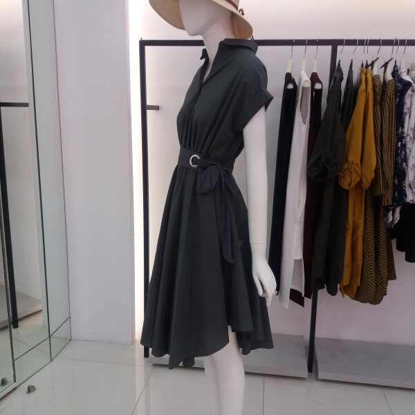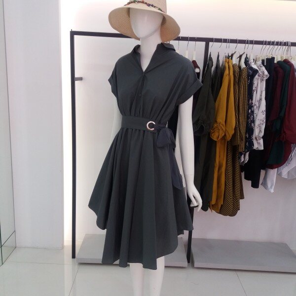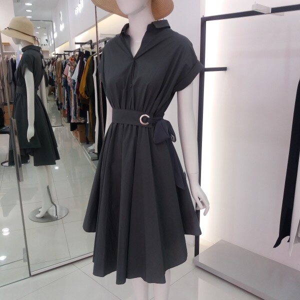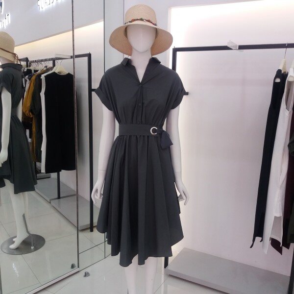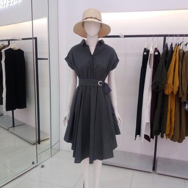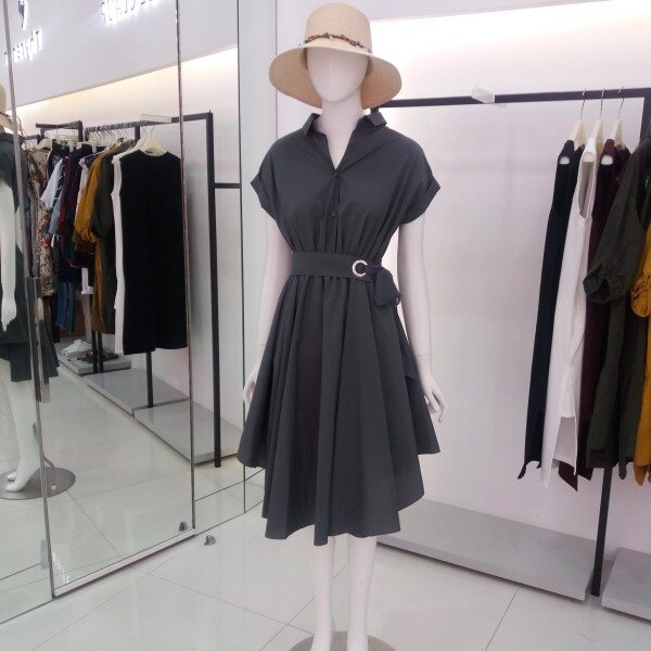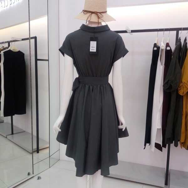 Add 나이스크랍 밑단언발로 포인트를준 플레어셔츠형원피스입니다 시원한소재감이 너무좋은 플레어원피스입니다