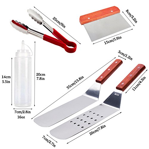 Studio : COM4SPORT Publisher : COM4SPORT Product Description Want to give a gift to that special someone? This griddle/grill tool kit is a perfect addition to any backyard kitchen, great for cookouts, barbecue, caterers, tailgaters, campers, hunting, fishing and more, a must have accessory for your griddle and grill. Each tool is made to a high standard. The perfect heavy duty tool kit for any novice or professional alike. Made with stainless steel and quality composite this grill kit is built to last. Plus, all tools are dishwasher safe for quick and easy BBQ clean up. This grill kit is built to last. Features: - The spatulas and tongs are great for picking or flipping burgers, pancakes, veggies, pizza, bacon, steak, fish, chicken breast and others. - The perforated spatula to prevent food sticking to utensils. - The scrapper is great for dicing food or cleaning griddles after cooking. - The 16oz bottles are perfect for storage olive oil, water or your favorite sauces. MULTIFUCTION USE: Teppanyaki Grill Spatula Set Griddle Grill Spatula Set Hibachi Grill Spatula Set Camping Spatula Set Outdoor Grill Spatula Set Griddle Scraper Pancake Turner Flat Top Griddles 100% SATISFACTION GURANTEED: If you are dissatisfied with our product for any reason, return your order within 30-Days for full refund, we will always go above and beyond to ensure you are happy with your customer experience. 0
